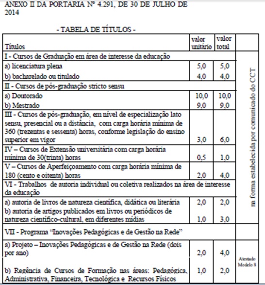Art. 4º - Serão considerados para fins de enquadramento por Evolução Funcional os títulos discriminados no Anexo II – Tabela de Títulos, integrante desta Portaria.