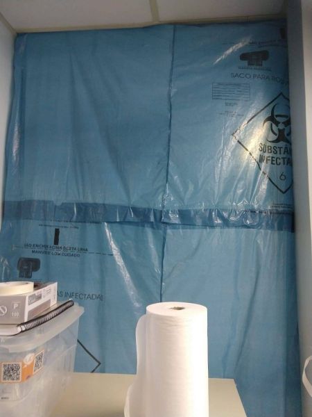 Na Unidade de Terapia Intensiva - UTI do Hospital do Servidor Público Municipal - HSPM, há um paciente com teste positivo para coronavírus, que chegou da Itália, e os profissionais estão sem EPI adequado. No Pronto Socorro do HSPM, há outros casos suspeitos de Covid-19 e não estão dando os equipamentos de proteção individual (EPI) necessários aos profissionais, nem mesmo máscara cirúrgica para quem atende na recepção. As cortinas para isolamento de um paciente do outro são sacos utilizados para roupas sujas emendados com esparadrapos pelos próprios profissionais. Os aventais não são impermeáveis e na sala de medicação nem pia para higienização das mãos há.